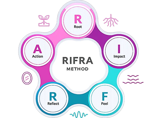 (RIFRA is an acronym: Root · Impact · Feel · Reflect · Action)